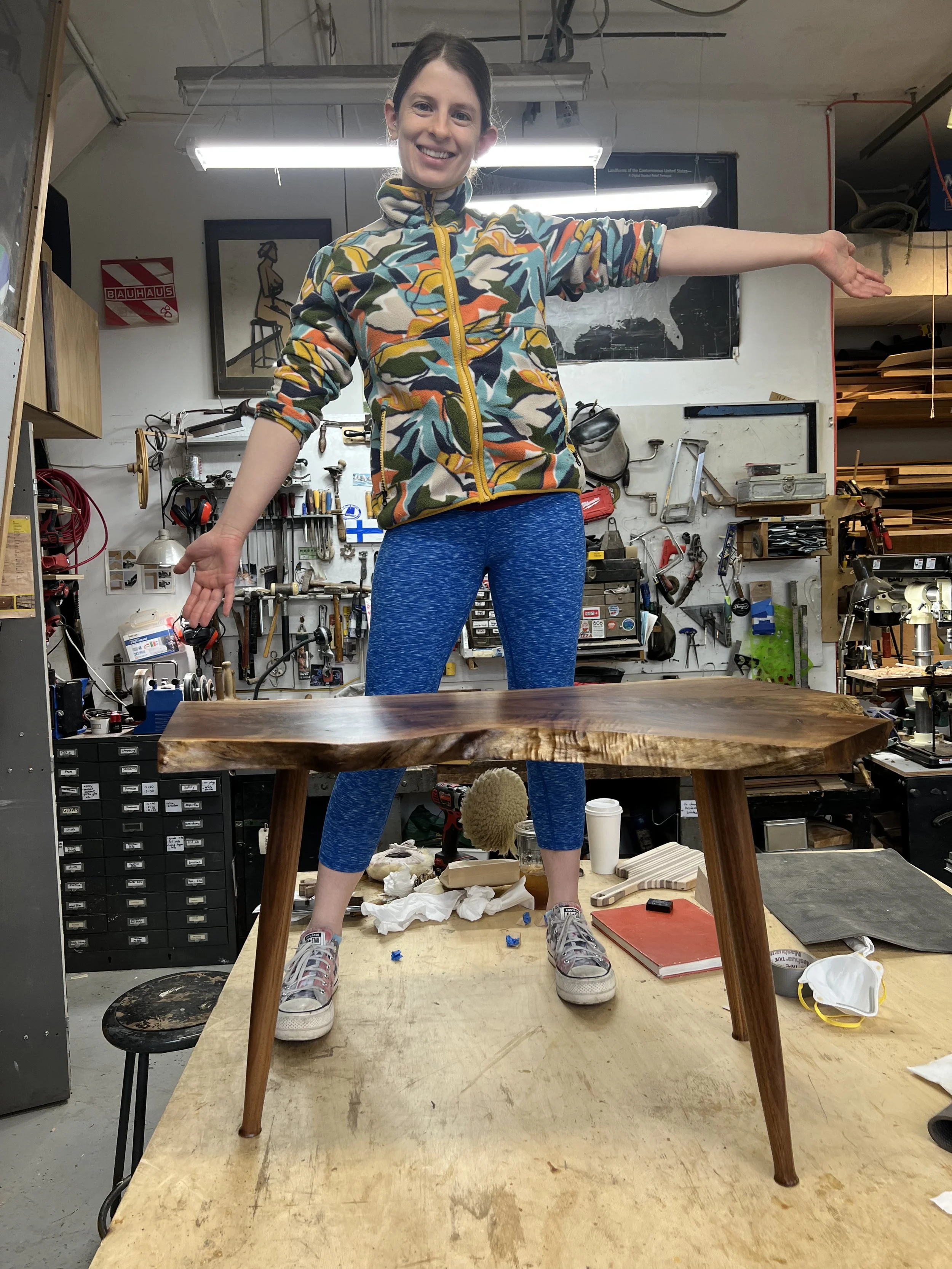 All new students typically begin their first semester working on two foundational projects: carving a wooden spoon and building a small keepsake box. In the second semester, beginner students will take on more intermediate projects such as a stool or side-table. As students become more comfortable with hand tools and studio equipment, they are encouraged to take on more complex projects.